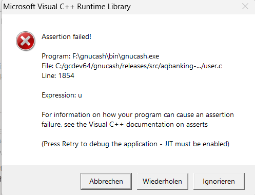 [gnucash-de] C++ Runtime Error