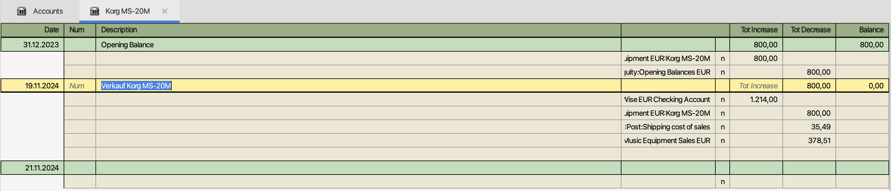 >> > account "Assets:Current Assets:Music Equipment EUR:Korg MS-20M".