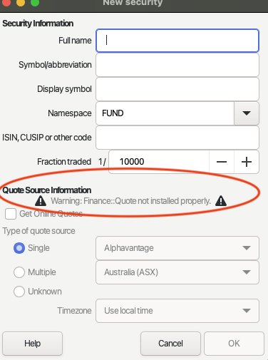 2. I learned that I needed to install the Finance::Quote tool. I tried