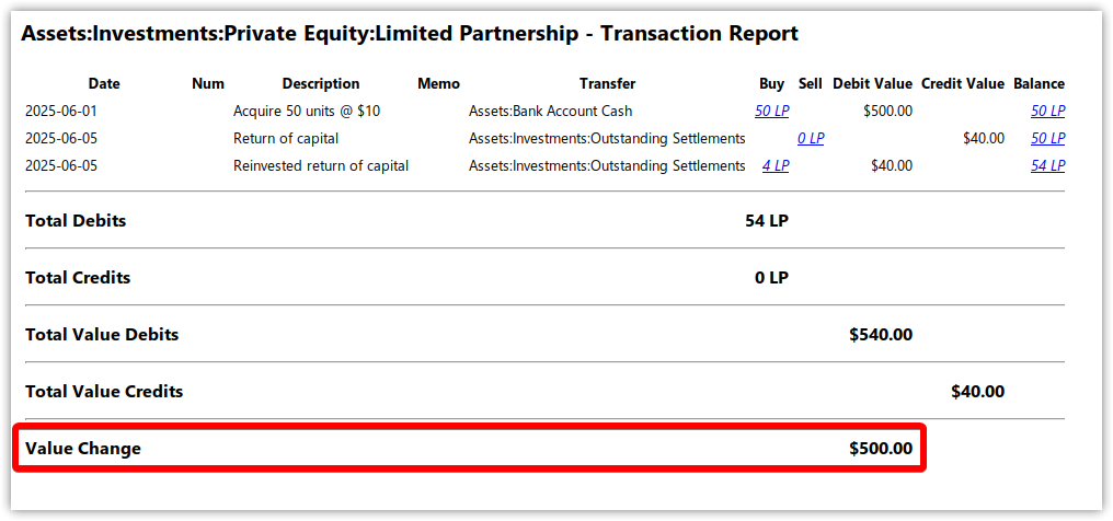 > > > [Asset:Investments:PrivateEquity:LP] $500
