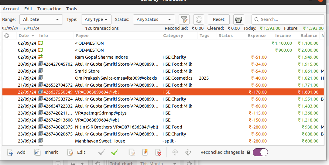 bookkeeping system) free version. In Homebank while any of your ledger is