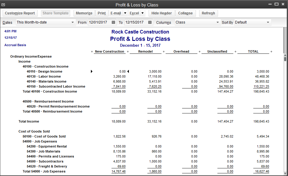 provided in the Profit and Loss statement by QuickBooks would be even more