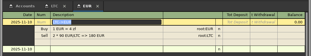 Entering a transaction into the LTC account that looks like