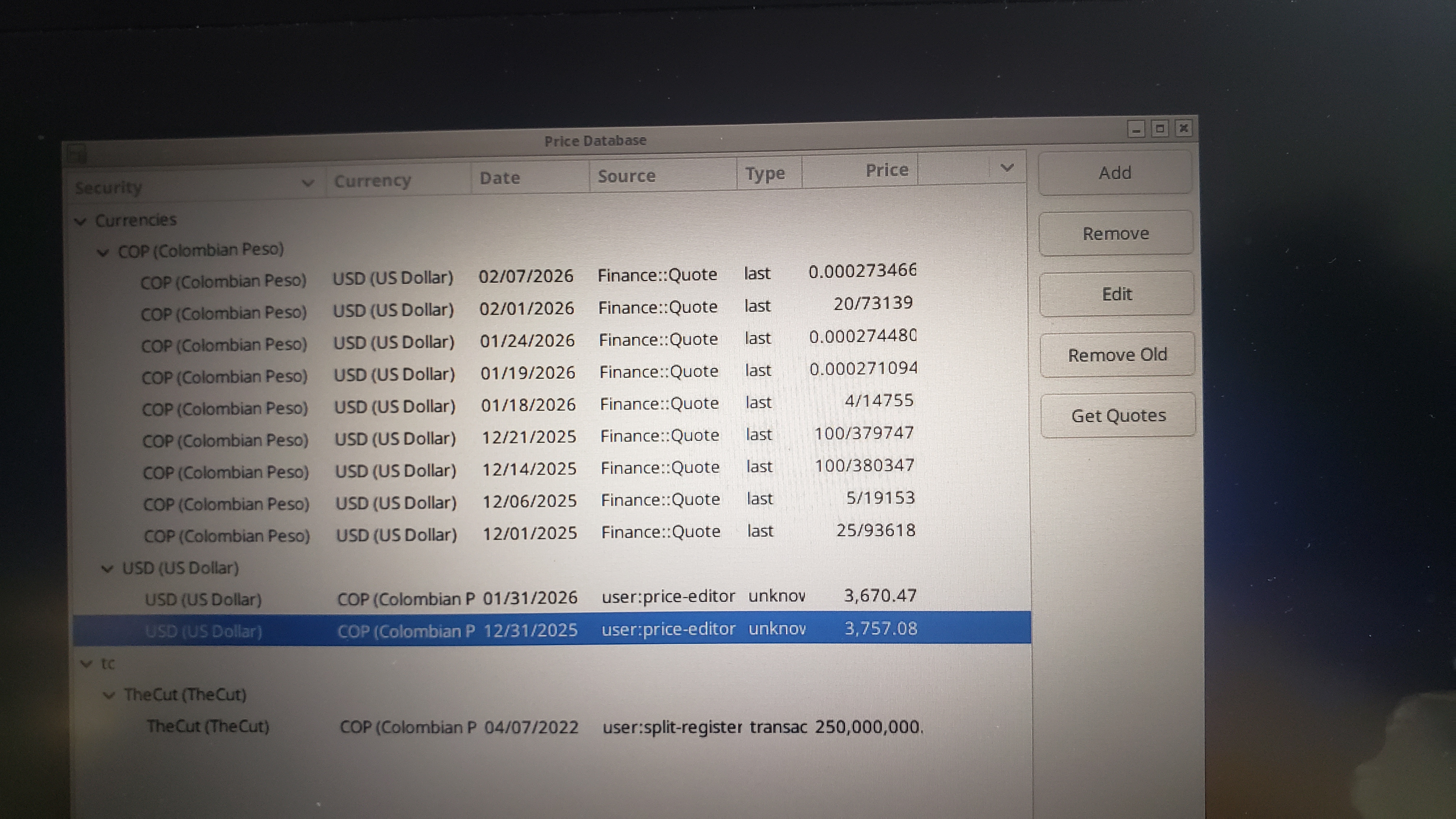 Using the Security editor, I tried to change the fraction traded for COP