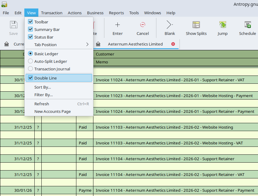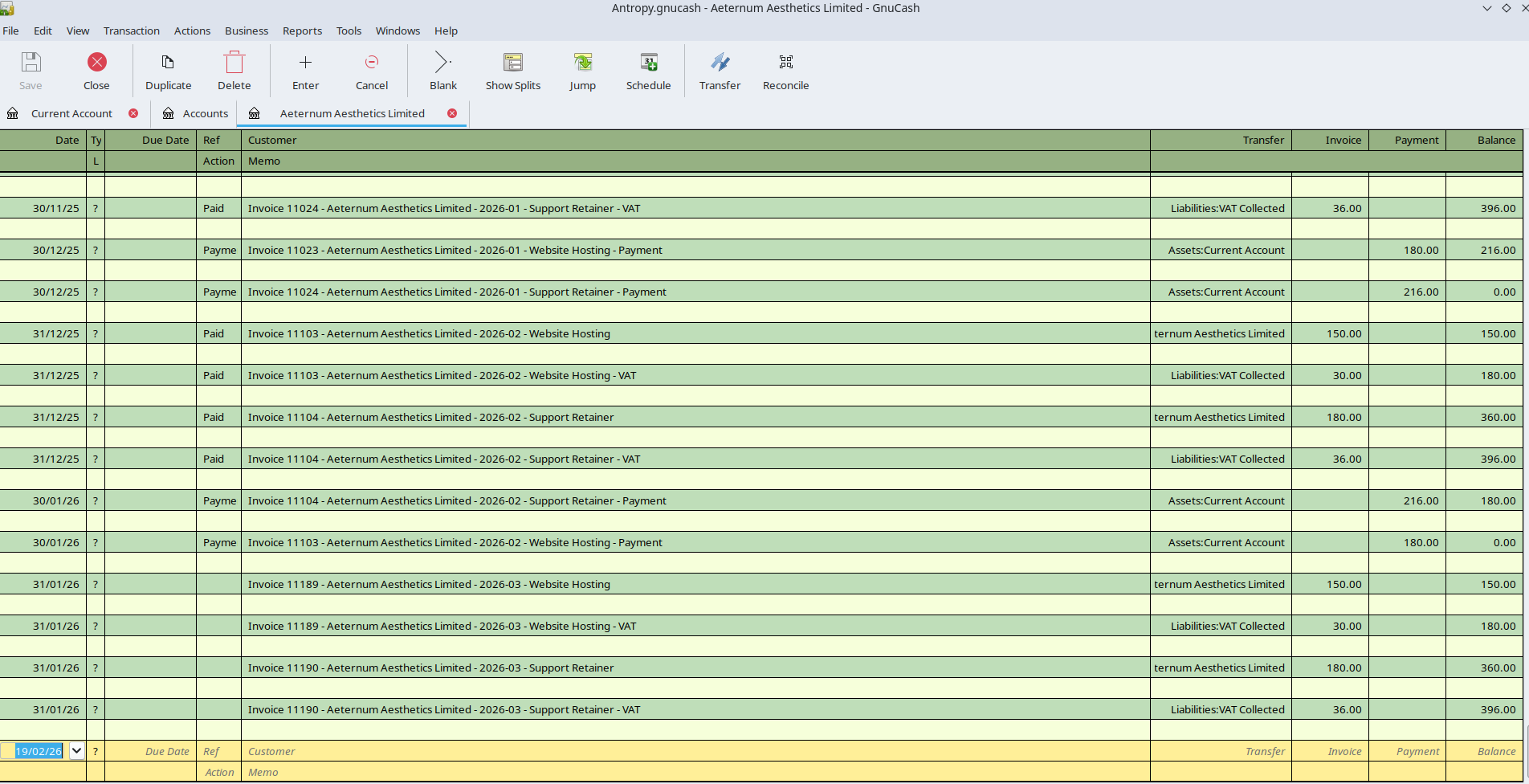 Name: 2026-02-19 GnuCash - Assets - Accounts Receiveable - Client Account.png