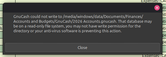 launch. I can access the data on the windows share, but GnuCash wont let