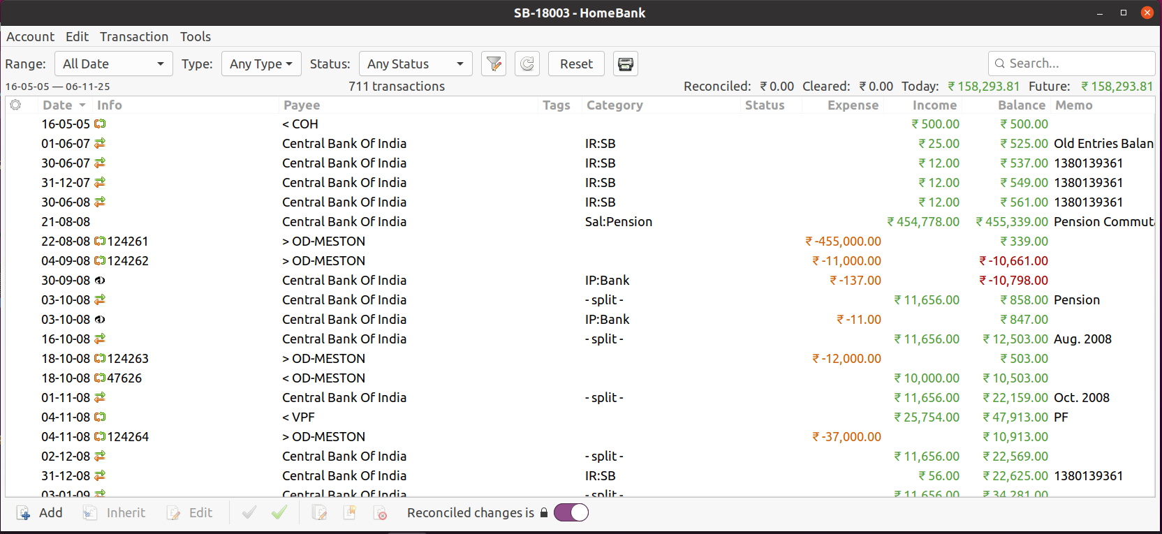 *You can see that the Account-Ledger in Homebank clearly displays the