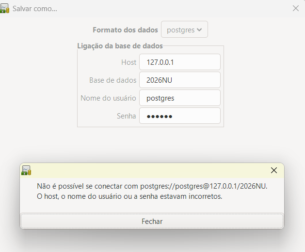 Criei um db no postgres14 e utilizo o GnuCash 5 Versão: 5.14, ID da compilação: 5.14+(2025-12-20) salvando normalmente os arquivos no formato nativo "gnucash"; porém não consigo salvar no postgres, pois aparentemente o formato (sintaxe) do comando (URL) gerado para o salvar (postgres://postgres@127.0.0.1/2026-NU) não corresponde ao formato aceito pela atual versão do DB;